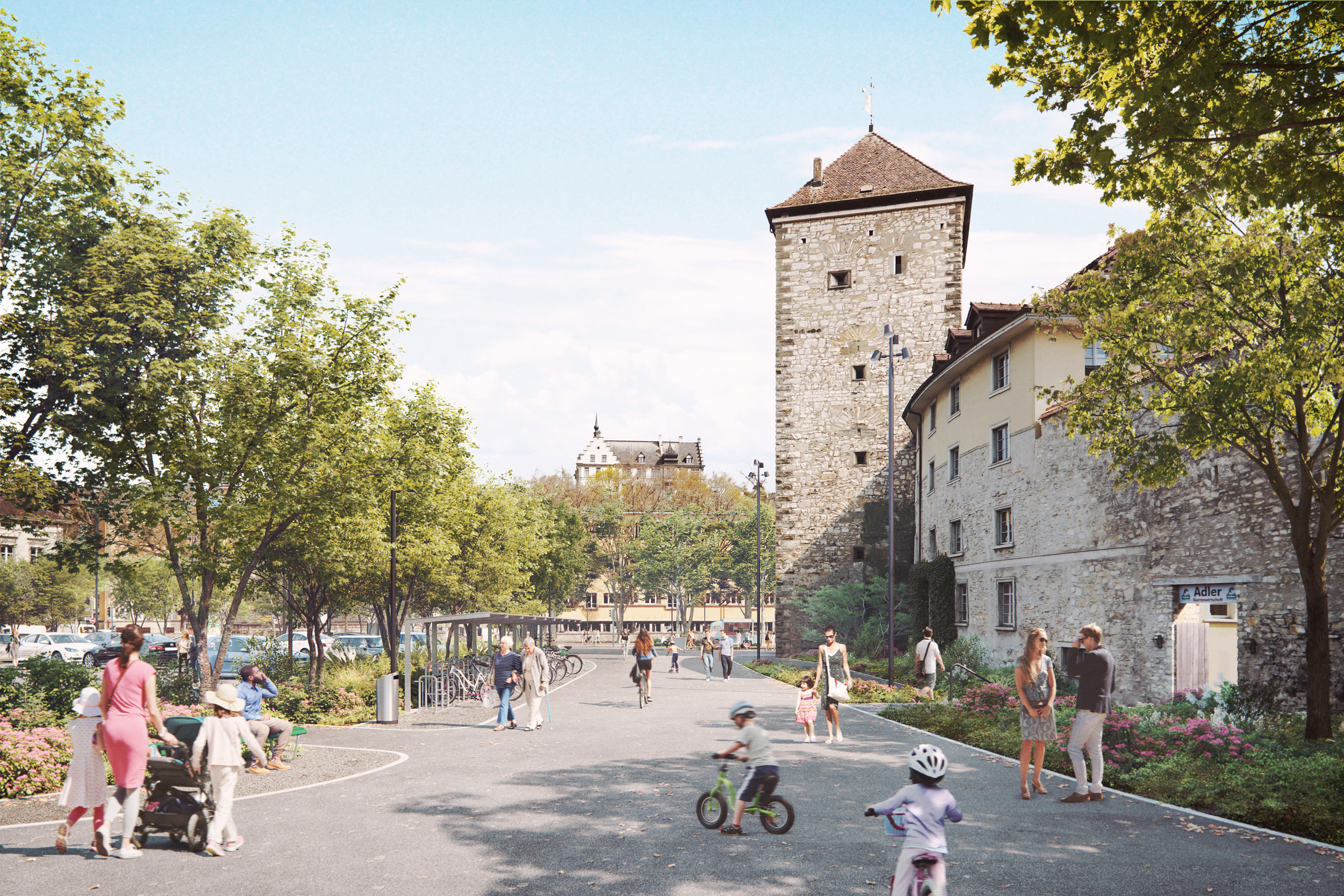 Das Schwabentor wird in die Gestaltung integriert und ist nicht mehr nur Strassenrand. Dank der Aufwertung kommen das Schwabentor und die Stadtmauer besser zur Geltung – ein markanter Abschluss der historischen Altstadt.