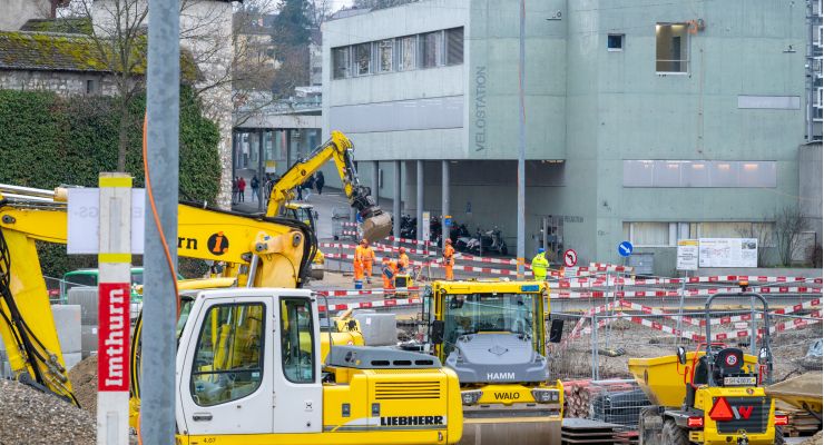 Fulachstrasse und der Einfahrt Güterbahnhof. - Erstellung der westlichen Fahrbahn in der Bachstrasse.
