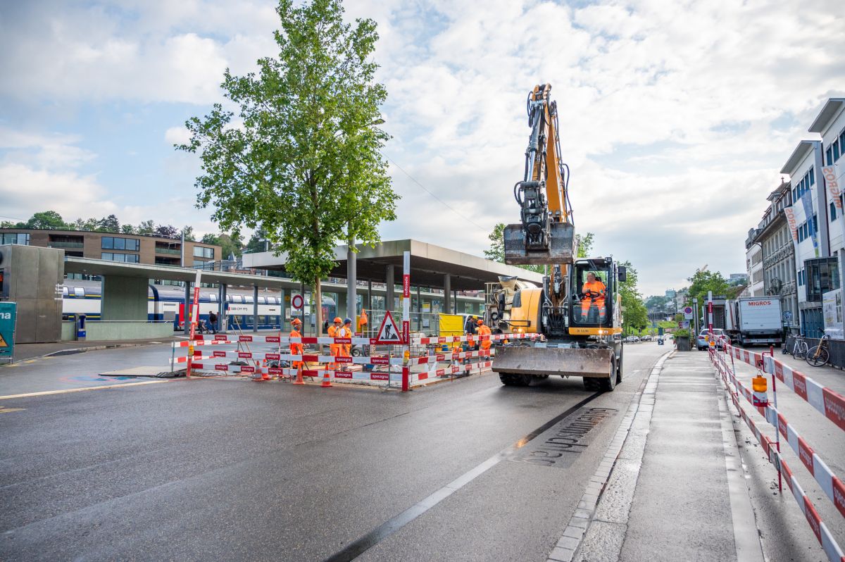 Die Arbeiten der Bauphasen 1–4 konzentrieren sich auf den Bereich vor dem Regionalbuszentrum: Abbruch der Beläge, des Betons und der Randabschlüsse. Instandstellung der Abdichtungen gegen die Unterführung Löwengässchen, Erneuerung der Oberflächenentwässerung. Danach werden der Strassen- und Trottoirbelag neu aufgebaut und die Fahrbahn betoniert.