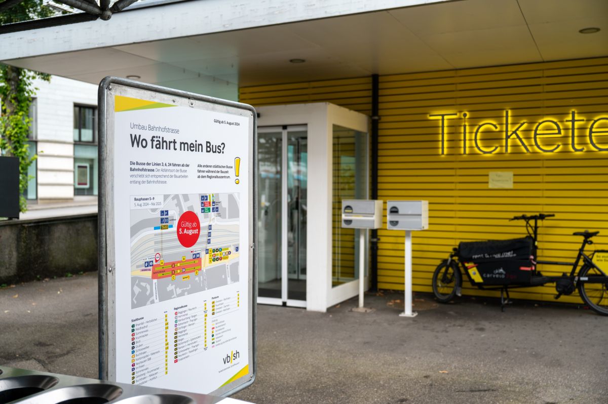 Ab der Bauphase 5 können aufgrund der Bauarbeiten nicht mehr alle städtischen Busse ab der Bahnhofstrasse abfahren. Ein Teil der Busse muss ins Regionalbuszentrum ausweichen. Vor Beginn dieser Bauphase 5 werden auf Plakaten, Tafeln und mit Flyern die geänderten Busabfahrtsorte kommuniziert.