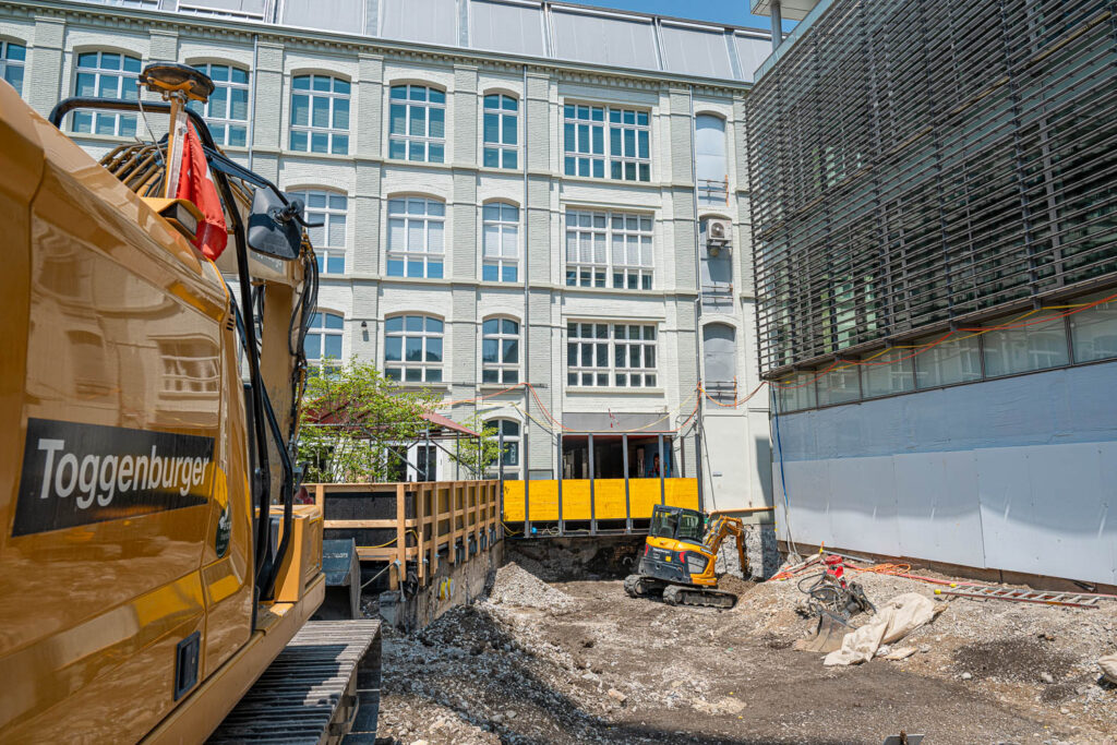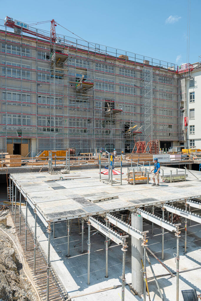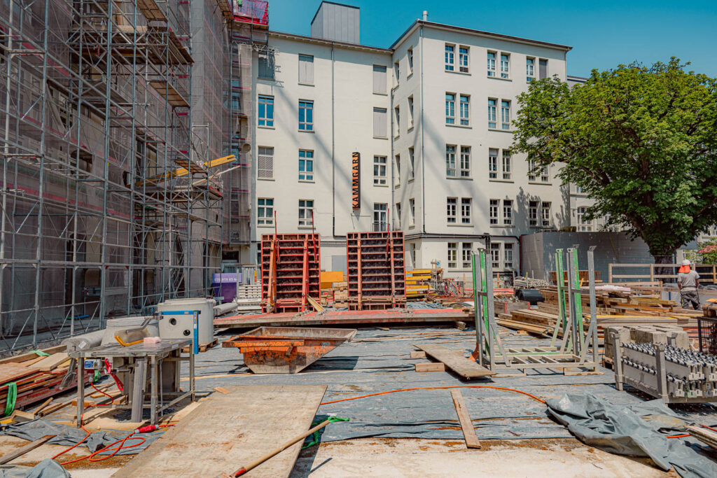 Fotorundgang 3. Juli 2025 Impressionen von der Baustelle Die Bauarbeiten im Kammgarnhof sowie im Flügel West sind in vollem Gange.Untenstehend finden Sie einige Impressionen von der Baustelle – aufgenommen von Philip Böni. Vorherige Nächste Übersicht Fotorundgänge Kammgarnareal