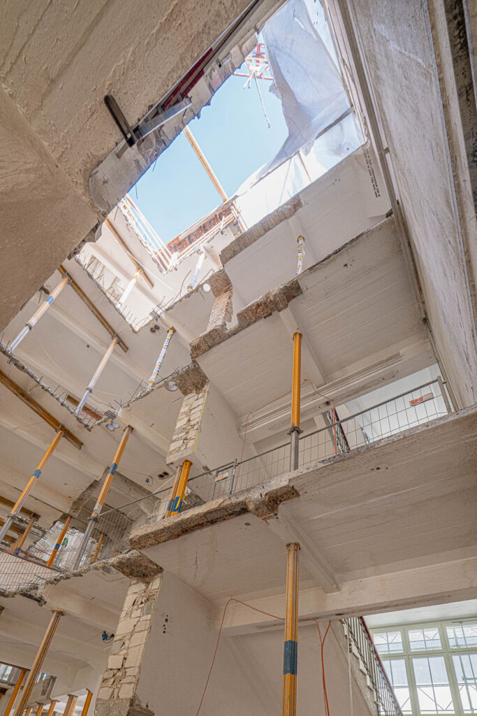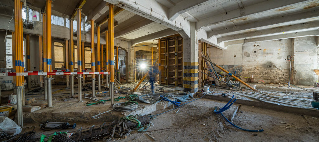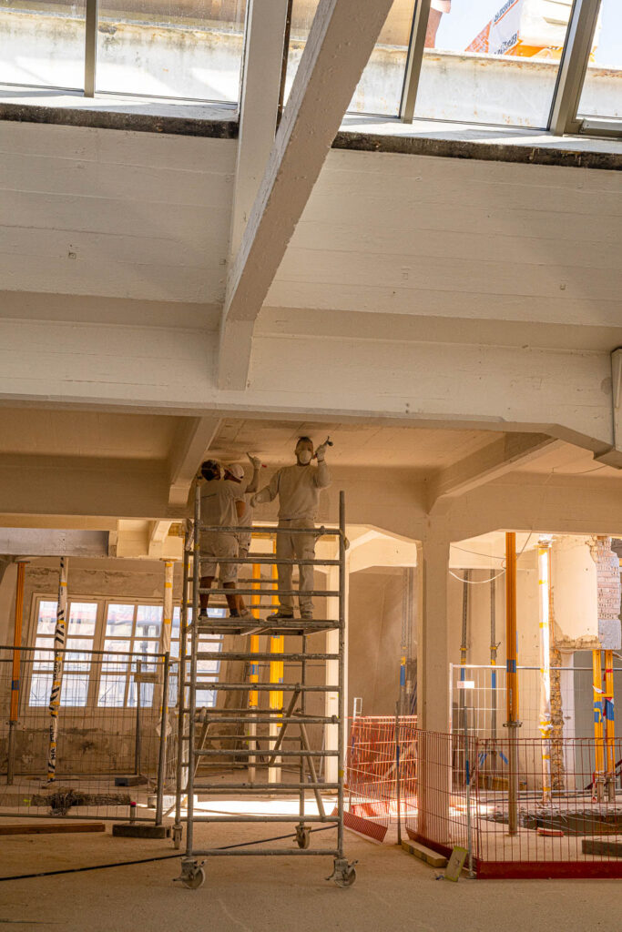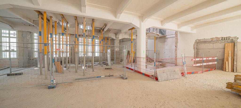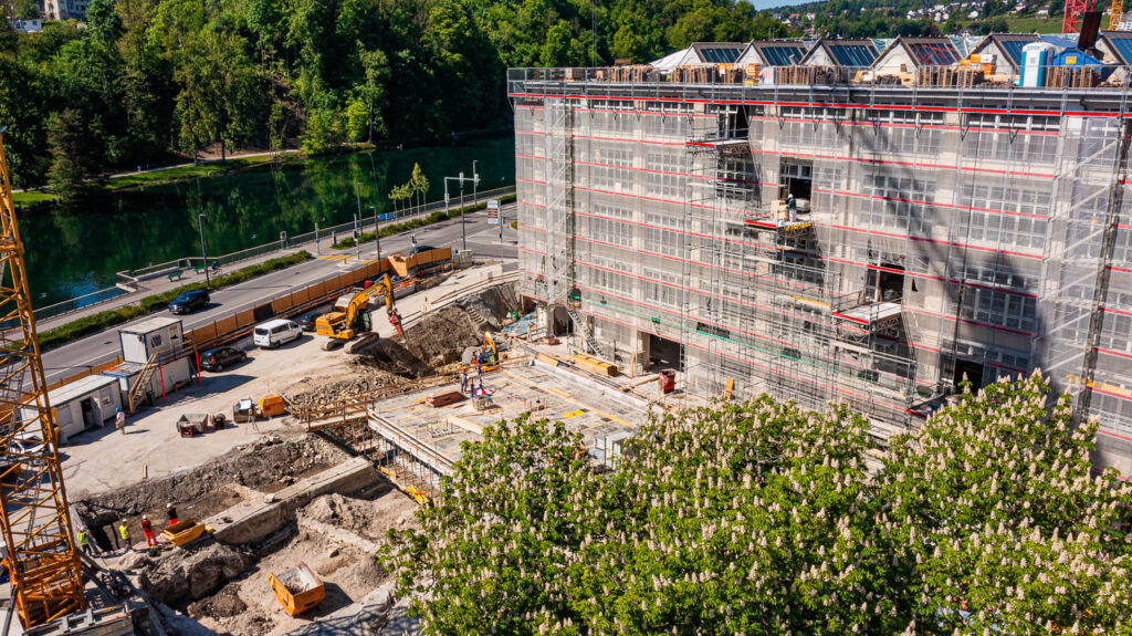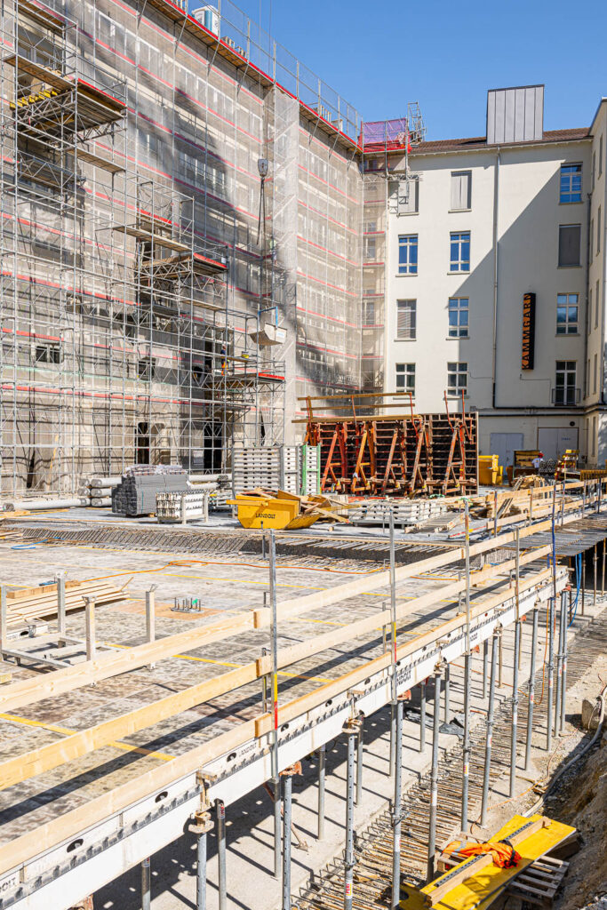 Fotorundgang 30. April 2025 Impressionen von der Baustelle Die Bauarbeiten im Kammgarnhof sowie im Flügel West sind in vollem Gange.Untenstehend finden Sie einige Impressionen von der Baustelle – aufgenommen von Philip Böni. Vorherige Nächste Übersicht Fotorundgänge Kammgarnareal